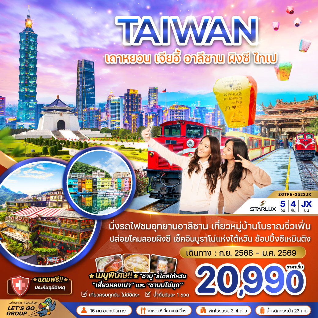 ทัวร์ไต้หวัน โคโยตี้ บินหรู ไต้หวัน อาลีซาน ลักชู 5วัน 4คืน (JX)
